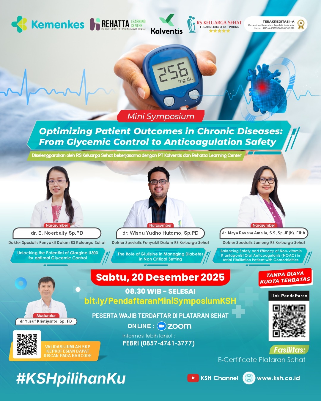 RS Keluarga Sehat bekerja sama dengan bekerja sama dengan PT Kalventis dan Rehatta Learning Center mempersembahkan 𝐌𝐢𝐧𝐢 𝐒𝐲𝐦𝐩𝐨𝐬𝐢𝐮𝐦 bertema "𝙊𝙥𝙩𝙞𝙢𝙞𝙯𝙞𝙣𝙜 𝙋𝙖𝙩𝙞𝙚𝙣𝙩 𝙊𝙪𝙩𝙘𝙤𝙢𝙚𝙨 𝙞𝙣 𝘾𝙝𝙧𝙤𝙣𝙞𝙘 𝘿𝙞𝙨𝙚𝙖𝙨𝙚𝙨: 𝙁𝙧𝙤𝙢 𝙂𝙡𝙮𝙘𝙚𝙢𝙞𝙘 𝘾𝙤𝙣𝙩𝙧𝙤𝙡 𝙩𝙤 𝘼𝙣𝙩𝙞𝙘𝙤𝙖𝙜𝙪𝙡𝙖𝙩𝙞𝙤𝙣 𝙎𝙖𝙛𝙚𝙩𝙮" 🫀