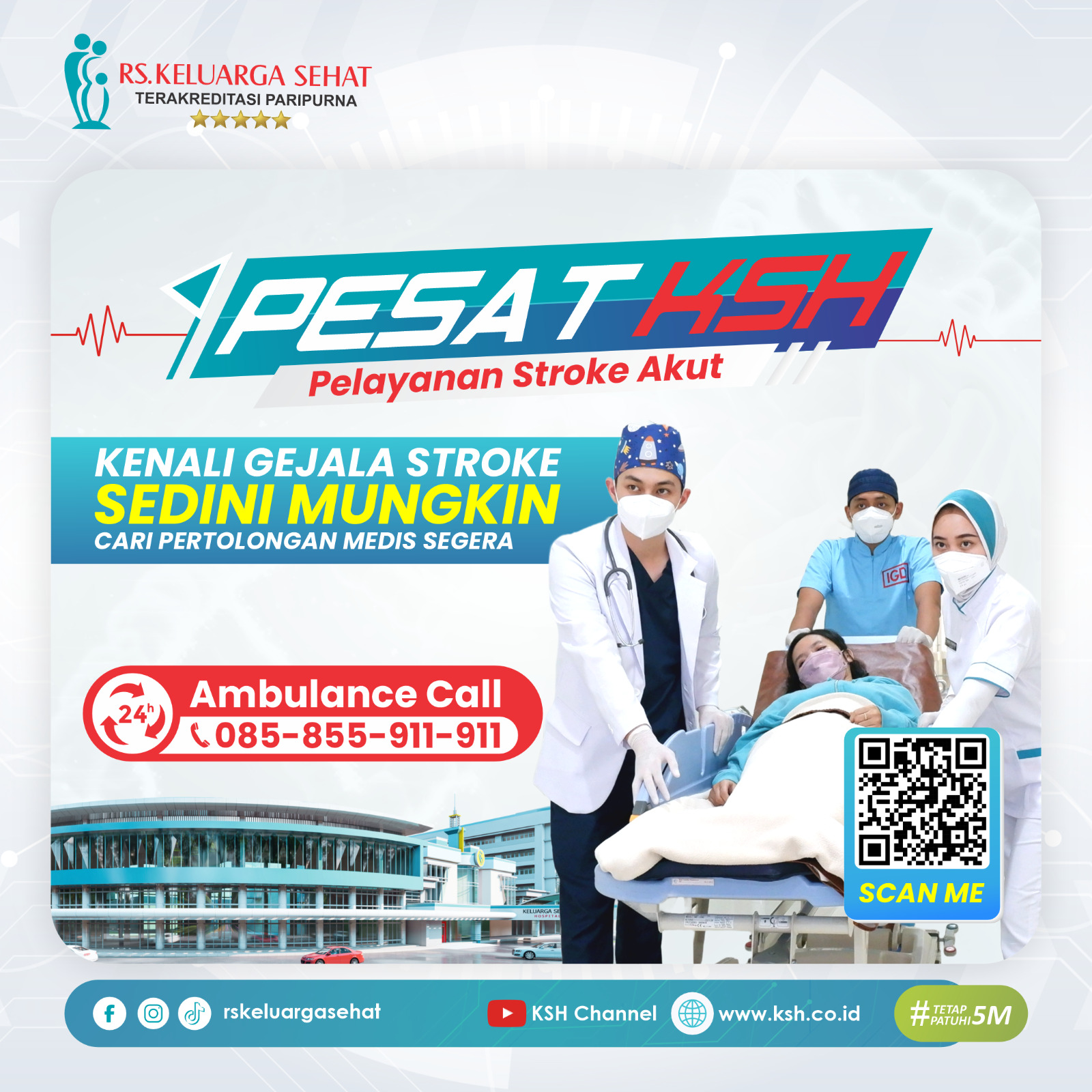 Pelayanan Stroke Akut KSH (PESAT KSH) merupakan pelayanan terhadap pasien stroke yang penanganannya di bawah kendali tenaga profesional medis yang telah terlatih dan didukung peralatan yang mumpuni.
