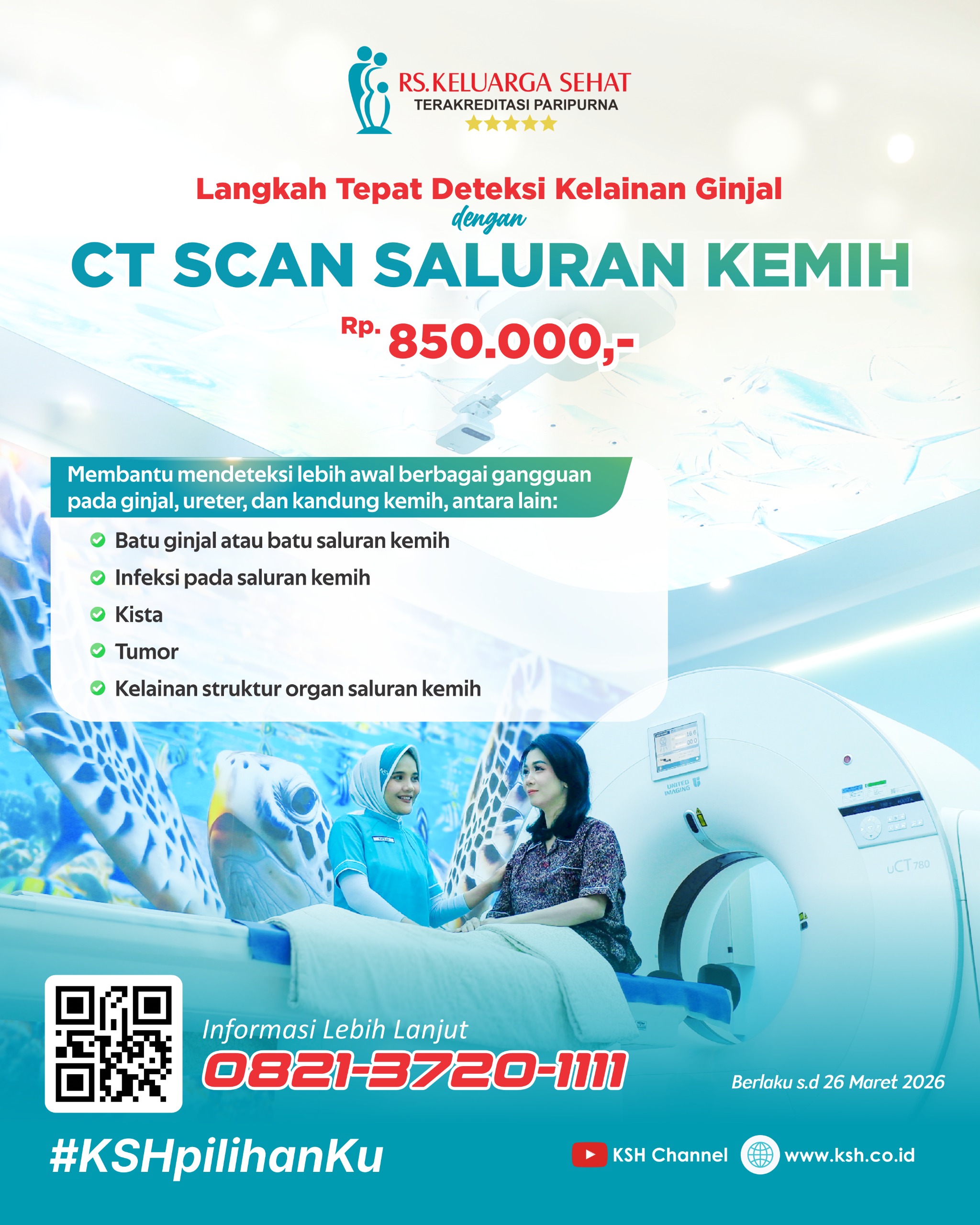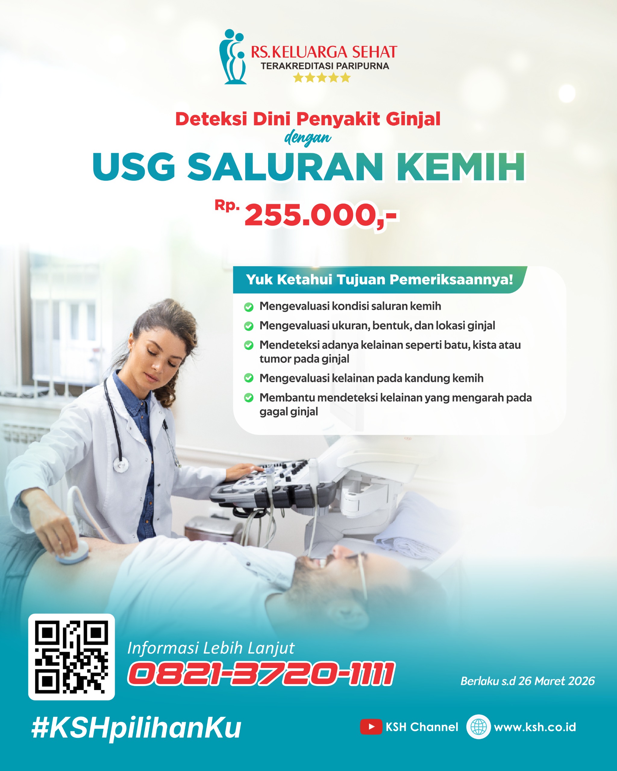 Dalam rangka Hari Ginjal Sedunia, RS Keluarga Sehat menghadirkan Paket Spesial Pemeriksaan Ginjal untuk membantu mendeteksi berbagai kelainan pada ginjal dan saluran kemih sejak dini, melalui pemeriksaan USG Saluran Kemih maupun CT Scan Saluran Kemih ๐ซโจ