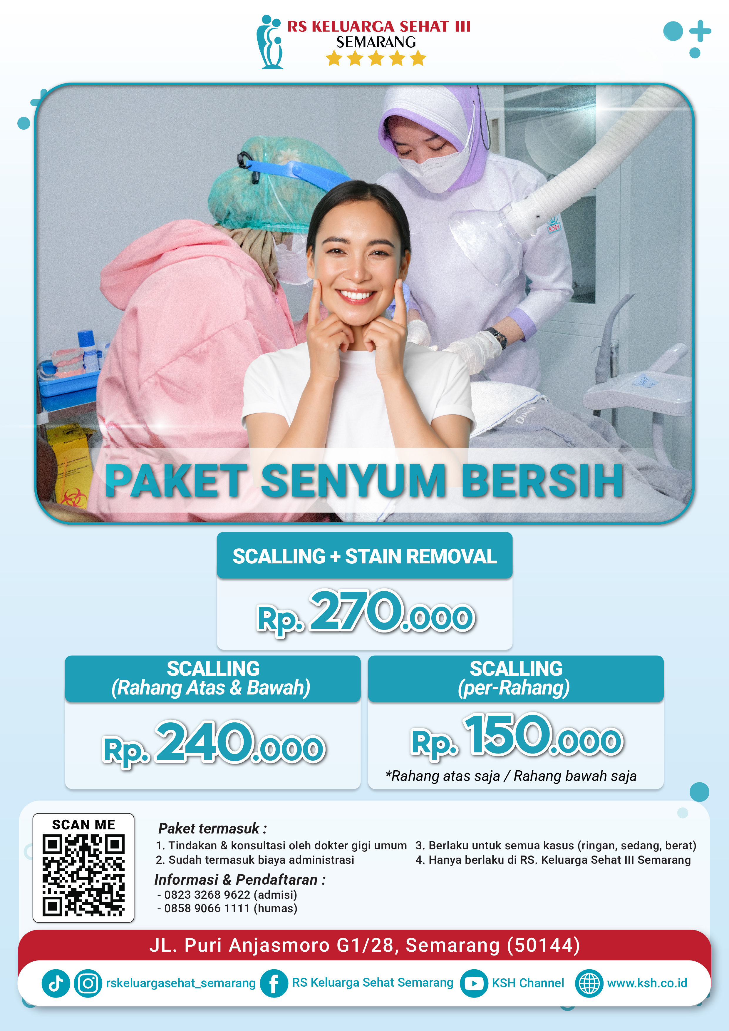 Kini perawatan gigi jadi lebih hemat dengan PAKET SENYUM BERSIH di RS Keluarga Sehat III Semarang :