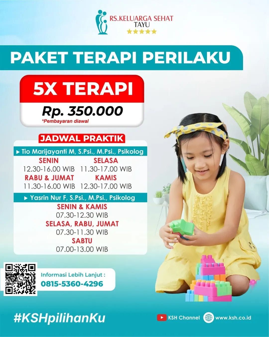 Kini, RS Keluarga Sehat Tayu hadir dengan Promo 5x Paket Terapi Perilaku 💙