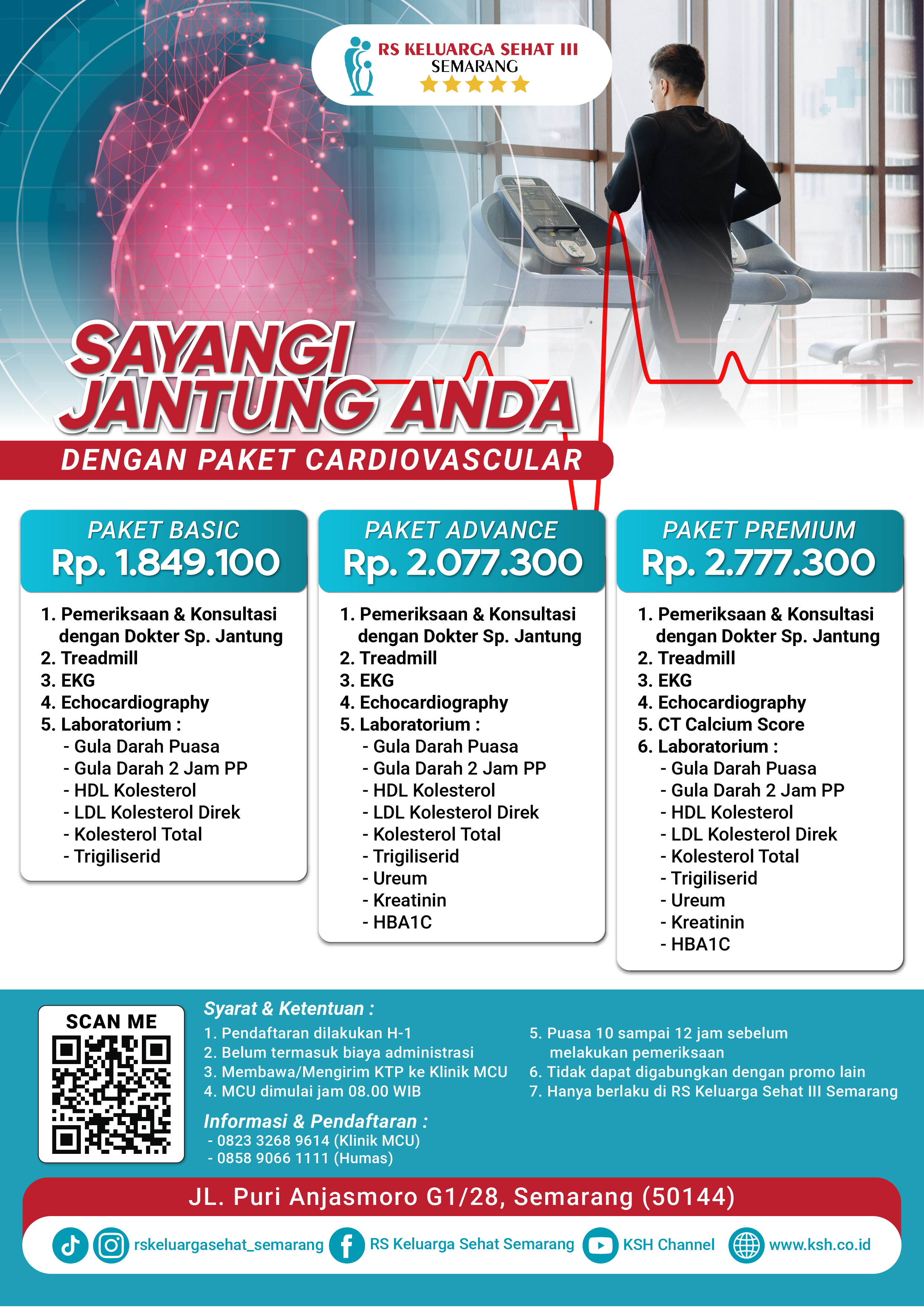 Cegah penyakit jantung sejak dini dengan Paket Cardiovascular di RS Keluarga Sehat III Semarang.